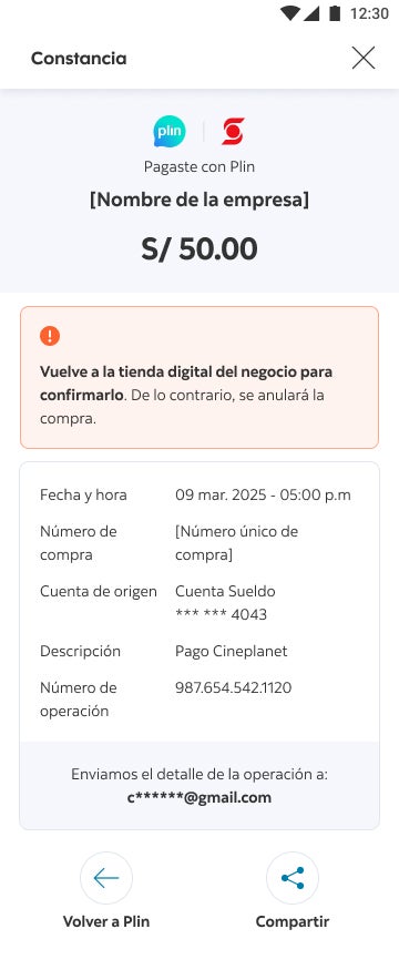 Te llegará una constancia de compra a tu correo.